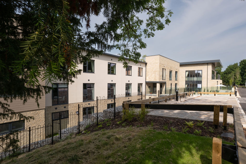 The building responds directly to its stunning hillside setting, adopting a split-level arrangement of two and three storeys to maximise the breathtaking views and abundant natural light. A pedestrian bridge over a sunken garden creates a strong sense of arrival at this landmark care home. Each floor benefits from external terraces, reinforcing a close connection to the landscape.