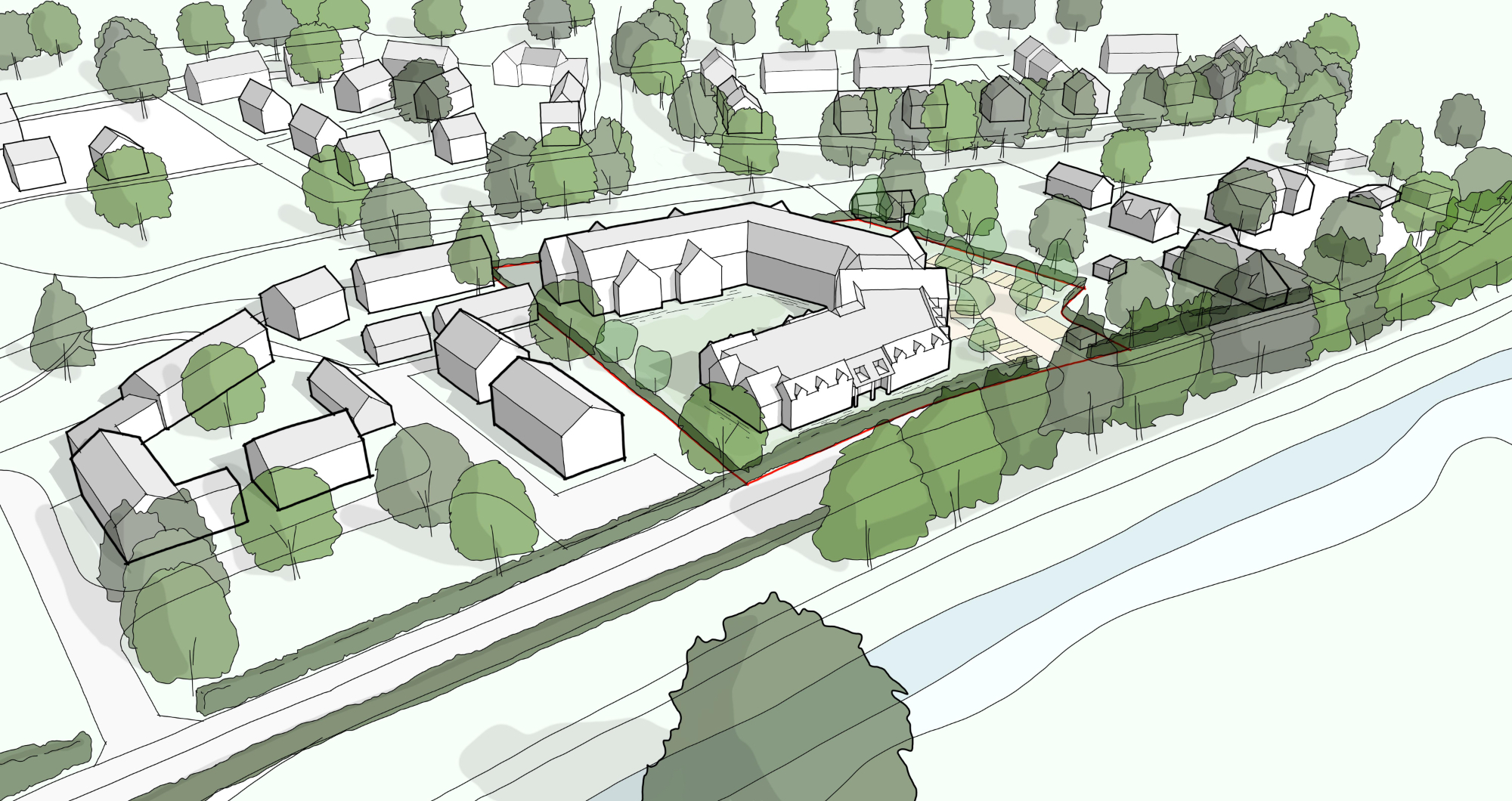 Developed in close discussion with the Local Planning Authority, the design is intended to feel welcoming and well-integrated, acting as a positive gateway to the town. The result comprises a series of traditional buildings arranged around a south-facing courtyard garden, offering a tranquil, communal space for residents.